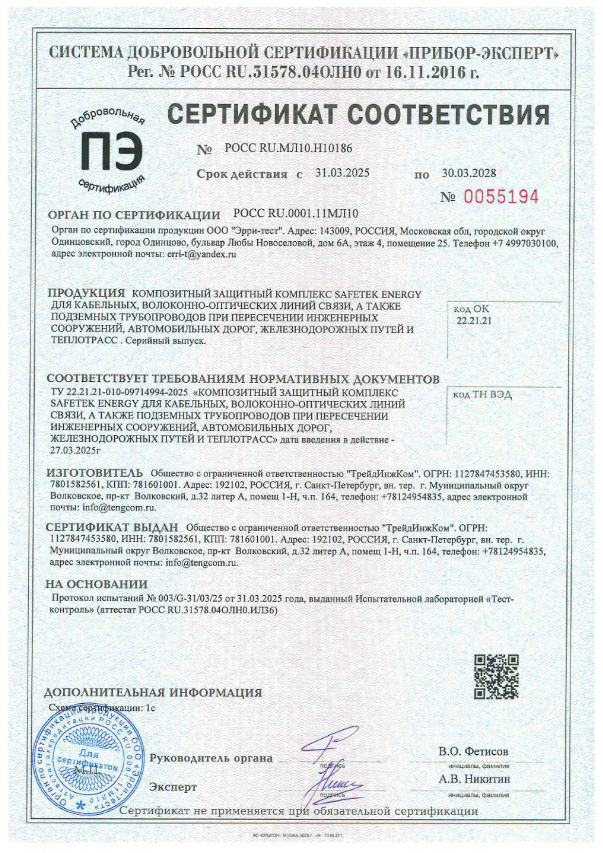 Сертификат соответствия Композитный защитный комплекс SAFETEK WT